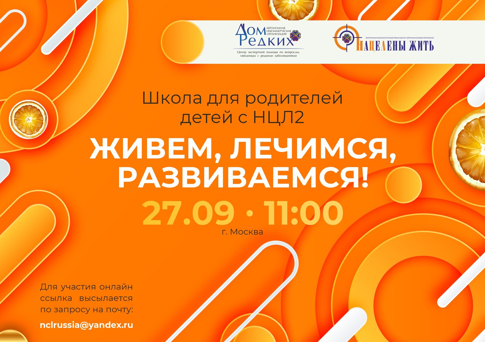 27 сентября состоится Школа для родителей детей с НЦЛ2 «Живем, лечимся, развиваемся!» -