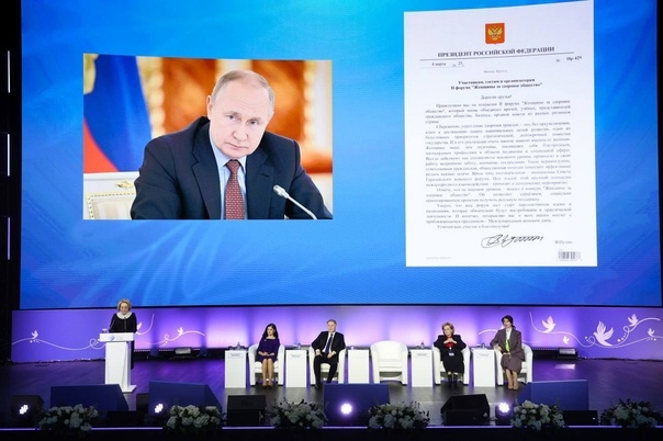 Пленарное заседание открыла председатель Совета Федерации Валентина Матвиенко. Она зачитала приветственное слово в адрес форума Президента России Владимира Путина: